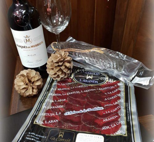 Cecina de pierna de Ciervo curada durante 90 días antes de dar este gusto natural que se disfruta a la perfección cortada fina y con un toque de aceite de oliva virgen extra.